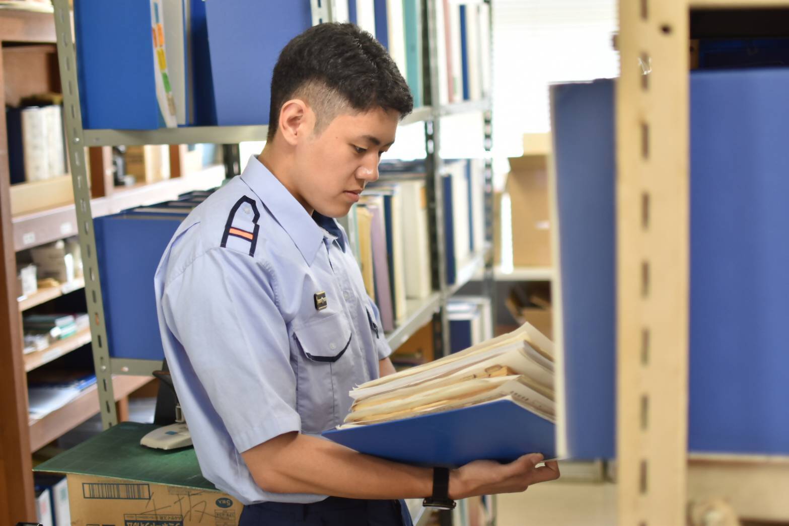 予防係は、消防隊などのような24時間勤務ではなく、平日の朝8時30分から17時15分が勤務時間で、